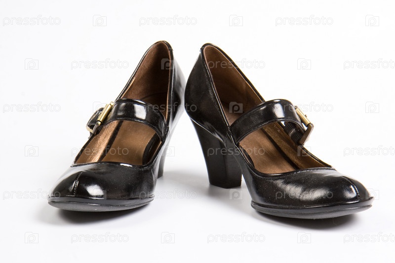 Женские черные лакированные туфли на белом фоне