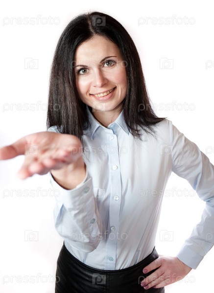 Красивая девушка показывает ладонь