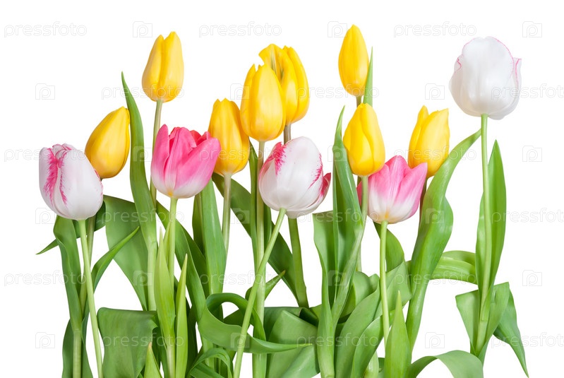 Букет из желтых, белых и розовых тюльпанов