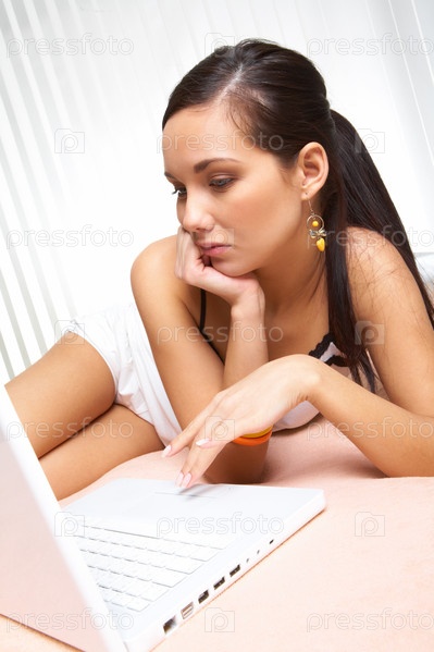 Девушка работает за ноутбуком