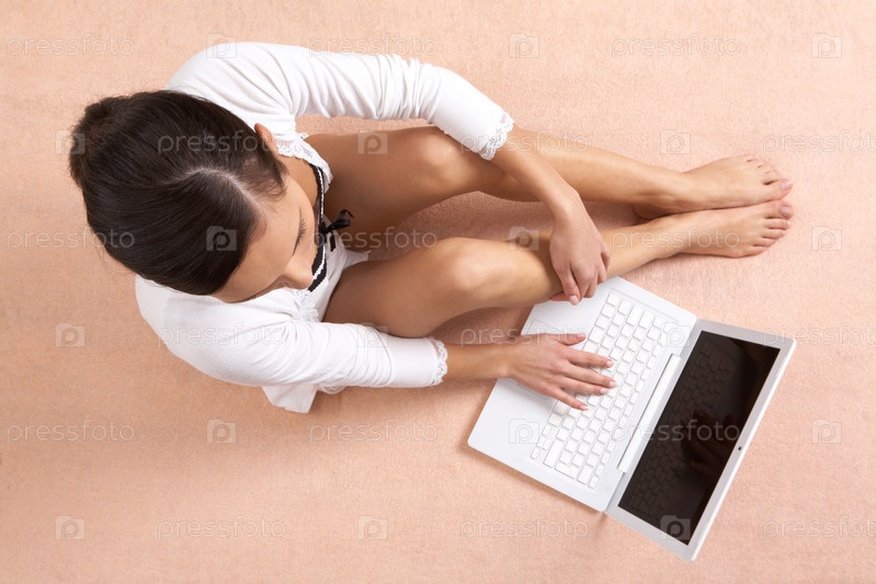 Девушка работает за ноутбуком