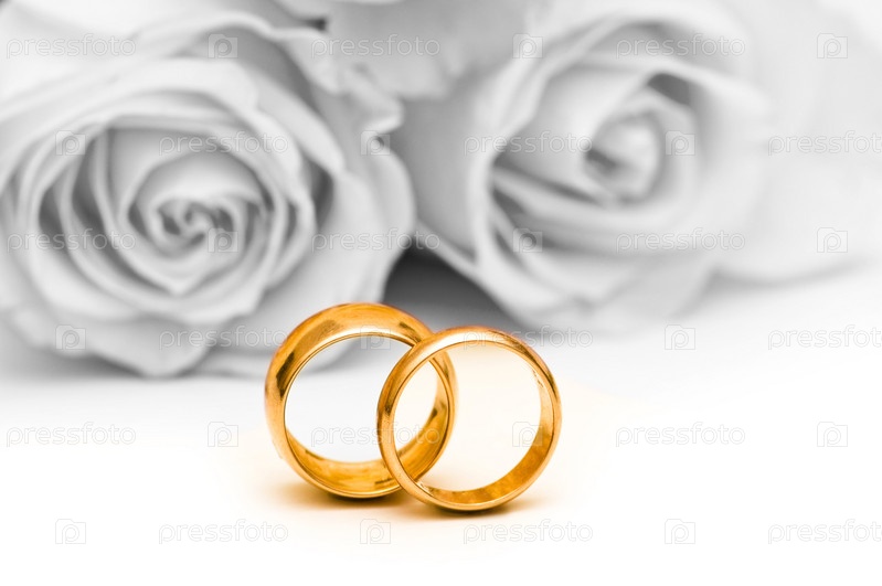 Обручальные кольца на фоне роз