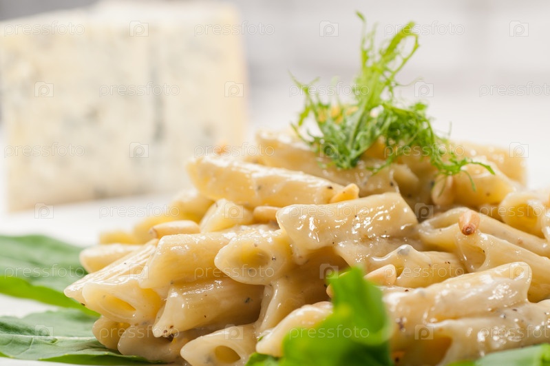 Итальянские макароны пенне с горгонзолой и кедровыми орешками