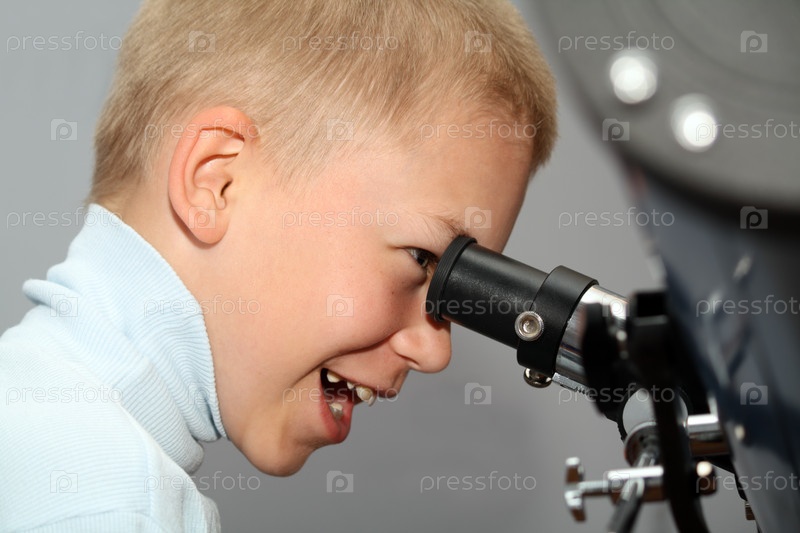 Мальчик смотрит в телескоп