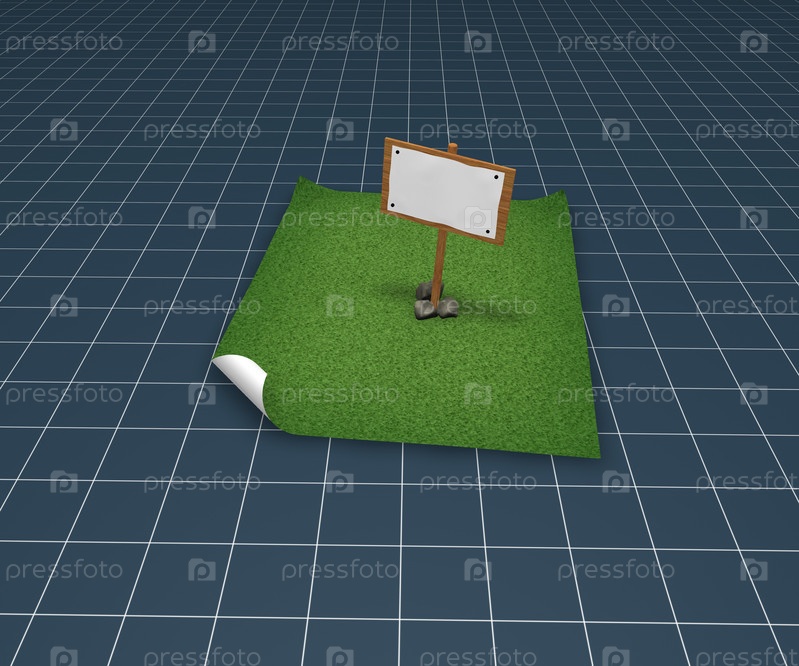 Пустой деревянный знак на зеленой бумаге - 3d иллюстрация