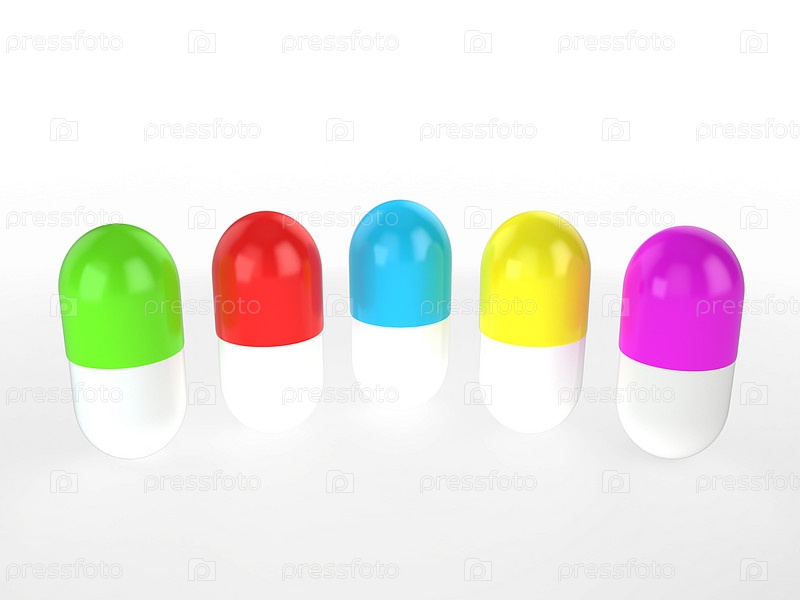 Цветные капсулы стоят в ряд