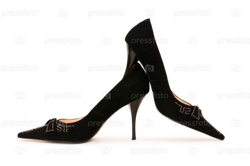 Элегантные женские вечерние туфли на белом фоне