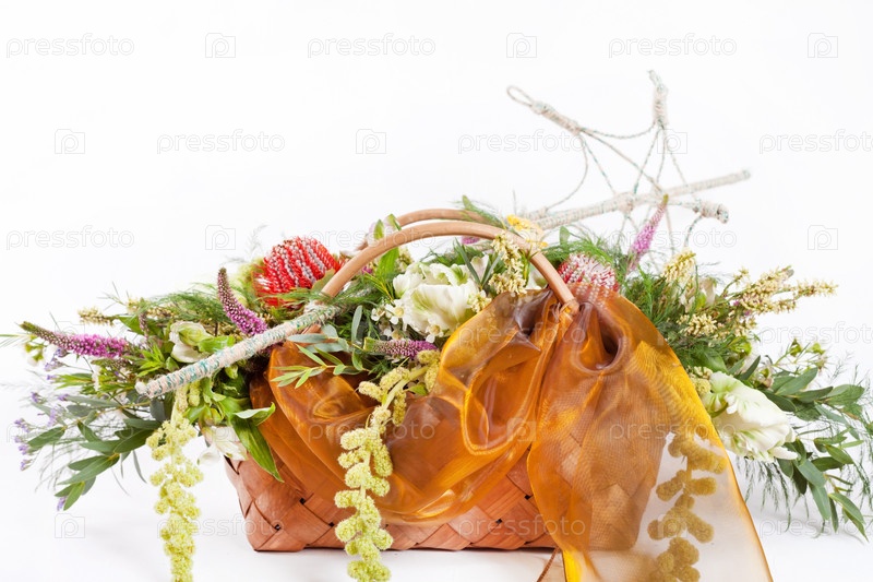 Красивые цветы в корзине
