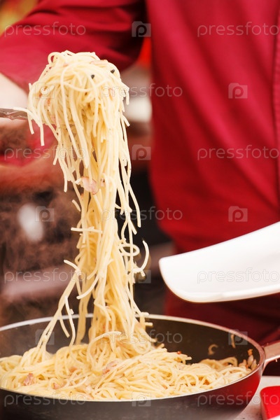 Шеф-повар готовит макароны