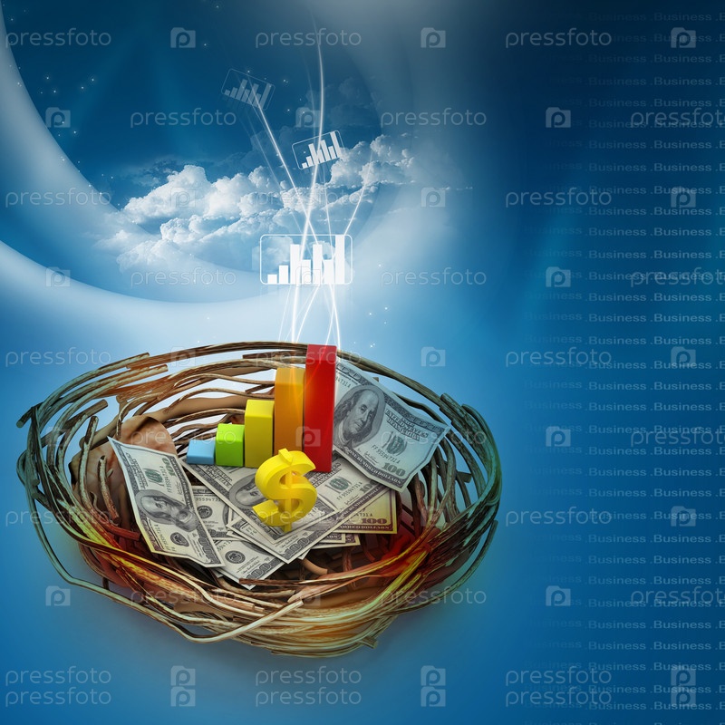 Бизнес график и доллар в гнезде. Концепция бизнеса