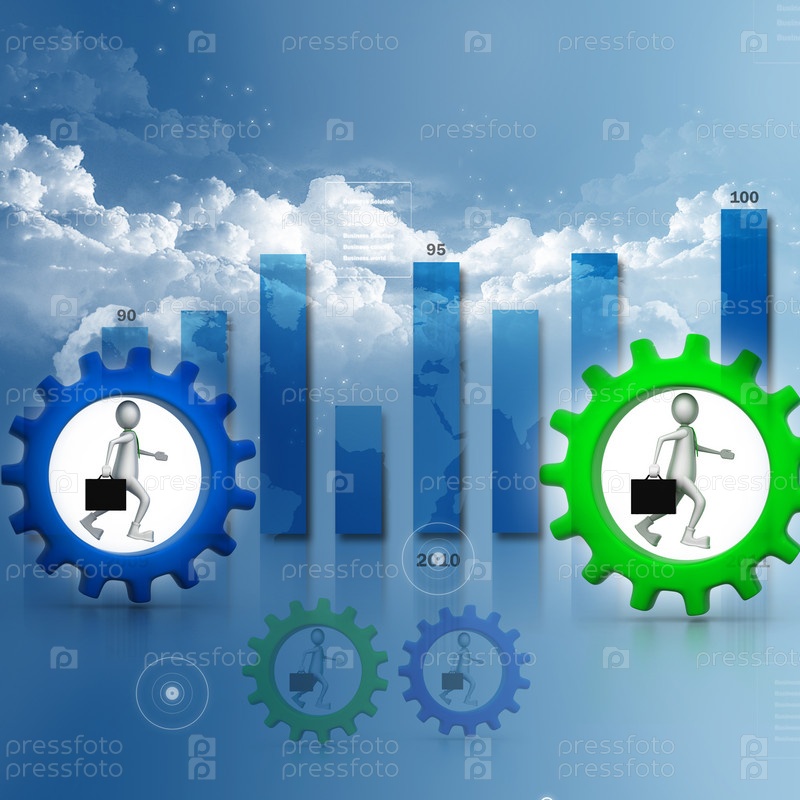 Деловой человек бежит в шестерне. Конкуренция
