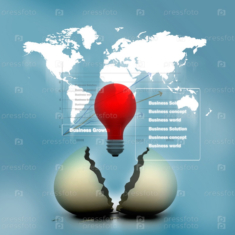 Разбитое яйцо со светящиеся лампой на деловом фоне