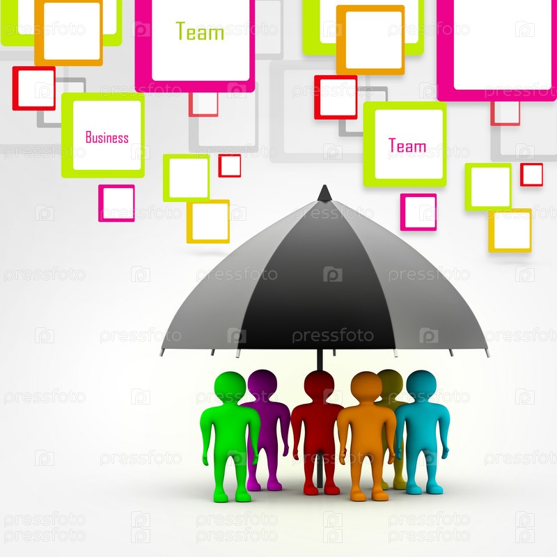 Команда под черным зонтиком в абстрактном фоне