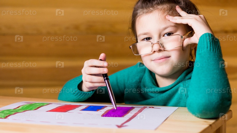 Девочка обдумывает диаграммы развития бизнеса