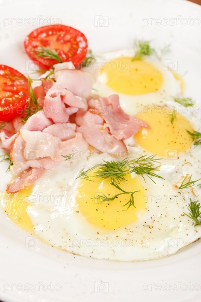Яичница с беконом и овощами