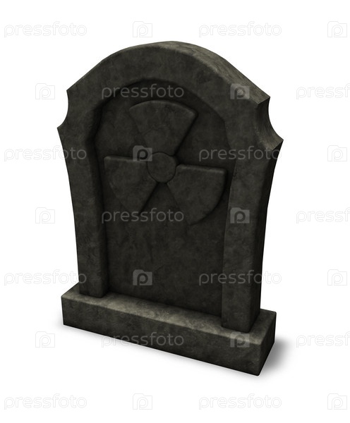 Надгробие с ядерным символом на белом фоне - 3d иллюстрация