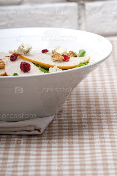 Салат с свежими грушами, рукколой и сыром горгонзола