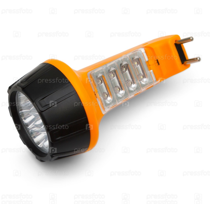 Электрический карманный фонарик, изолированный на белом фоне