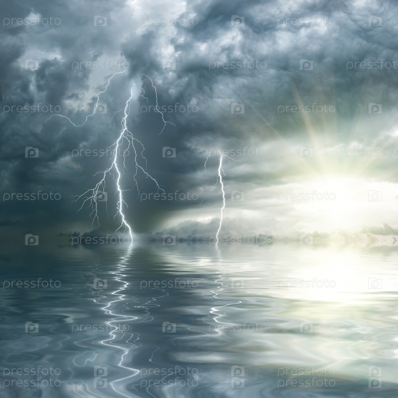 Гроза с дождем и молнией