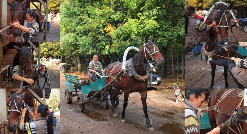 Коллаж. Лошадиная повозка