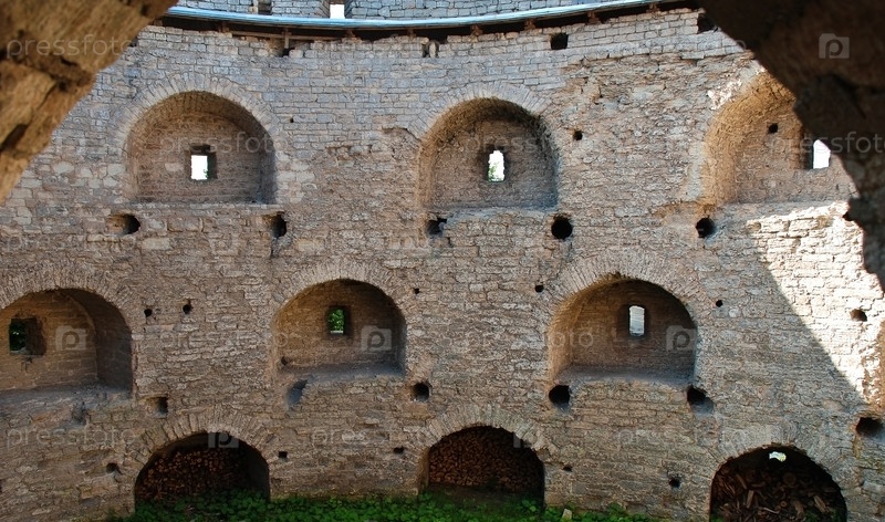 Старые средневековые стены с бойницами в Пскове