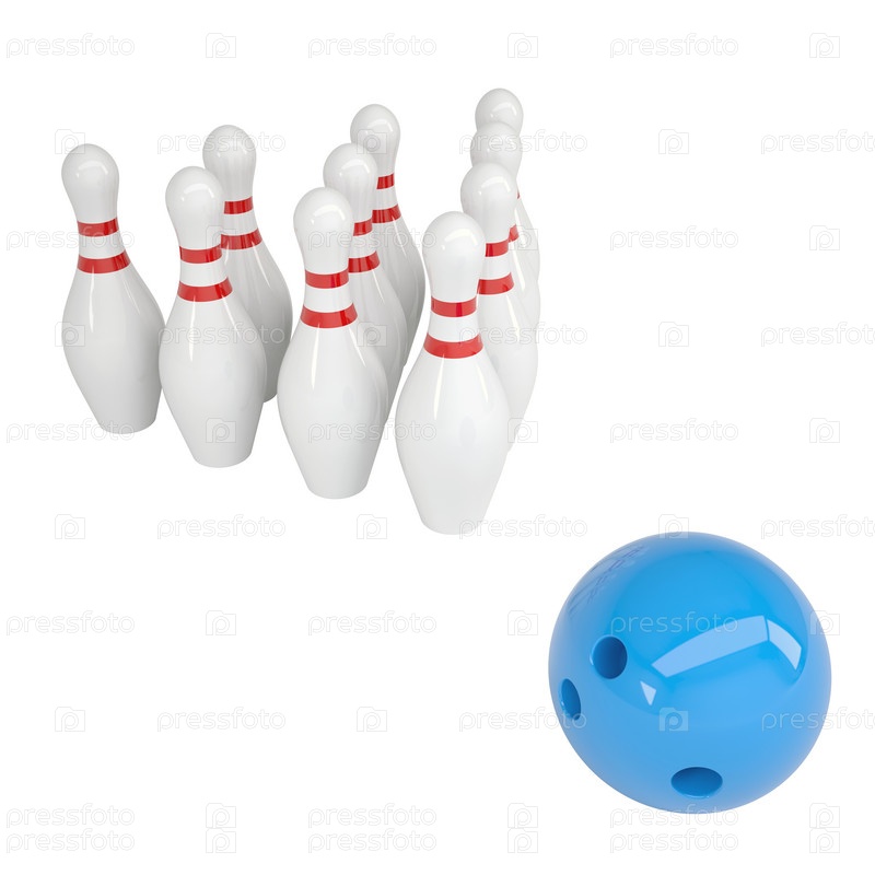 Синий шар и кегли для боулинга