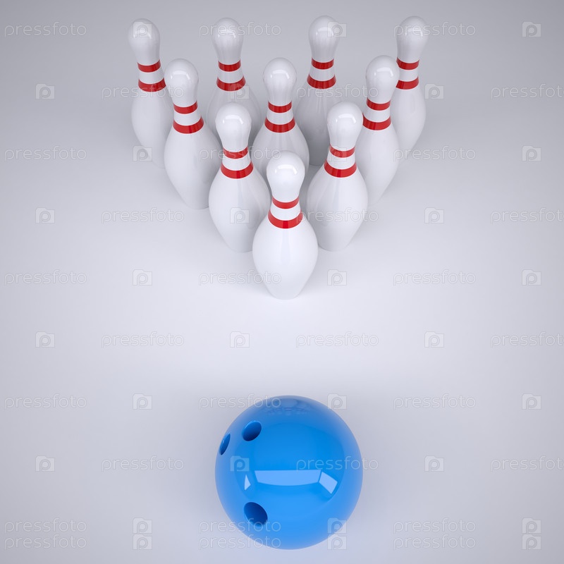 Синий шар и кегли для боулинга