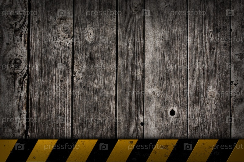 Желто-черные предупреждающие полосы на деревянном фоне