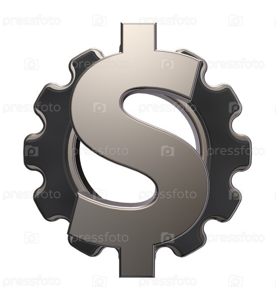 Зубное колесо с символом доллара - 3d иллюстрация