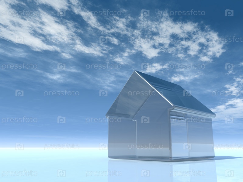 Стеклянный дом на фоне неба - 3d иллюстрация