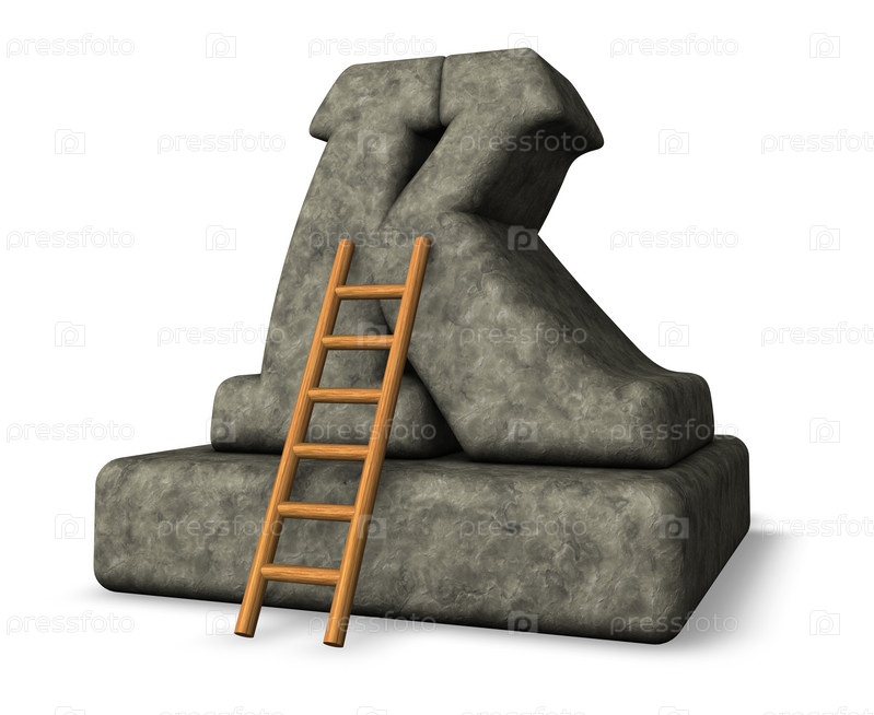 Каменная цифра k и лестница - 3d иллюстрация