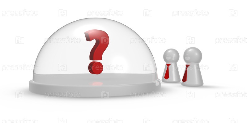Фигуры с галстуком и вопросительным знаком под стеклянным куполом - 3d иллюстрация
