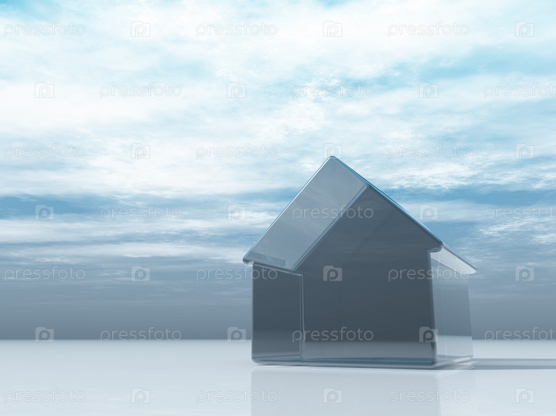 Стеклянный дом под облачным небом. 3d Иллюстрация