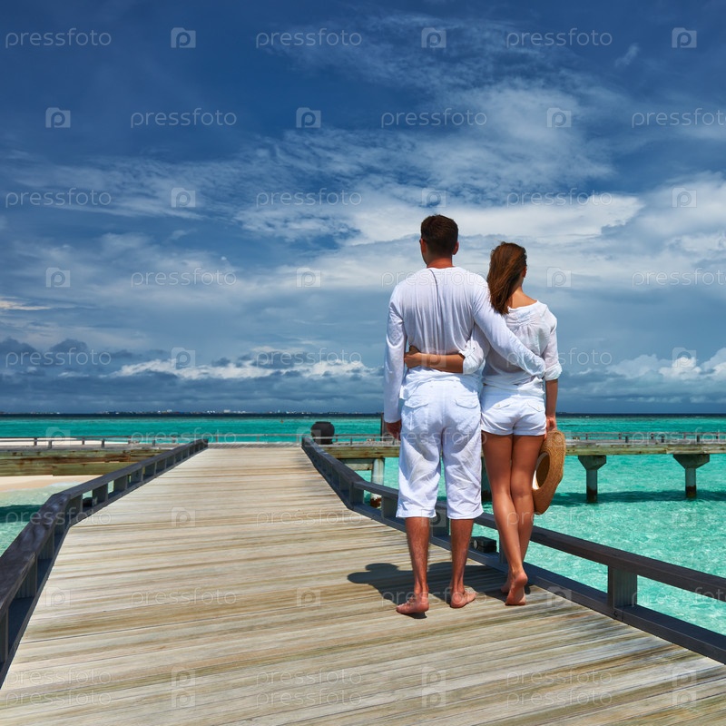 Пара на пристани на Мальдивах