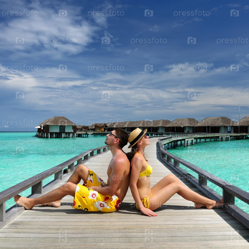 Пара на пристани на Мальдивах