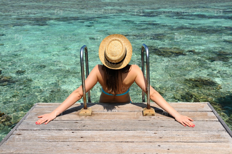Женщина на пристани на Мальдивах
