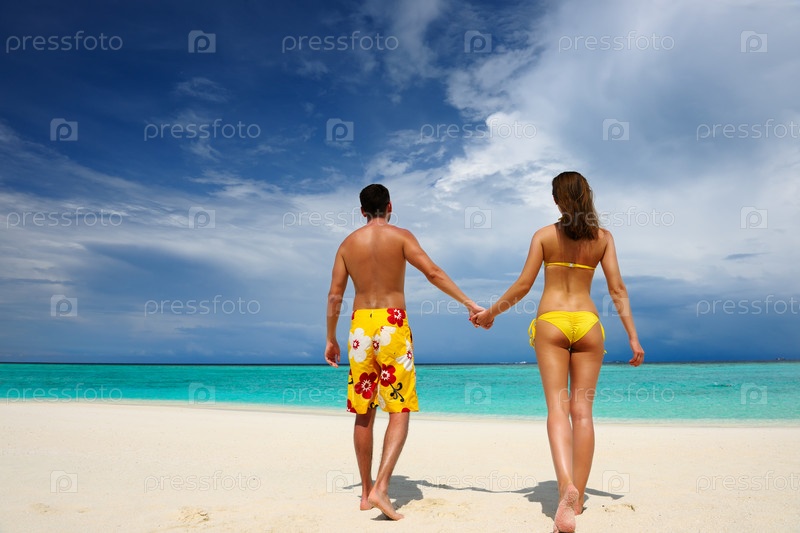 Пара на пляже на Мальдивах