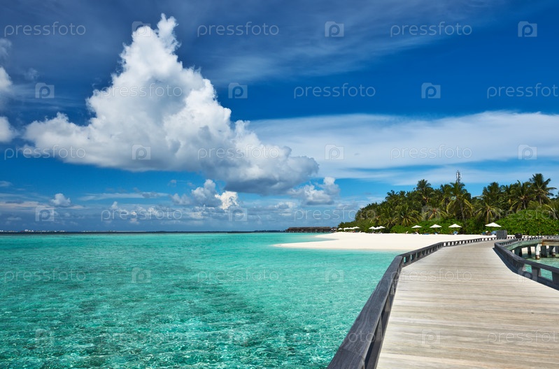 Красивый пляж с пристанью