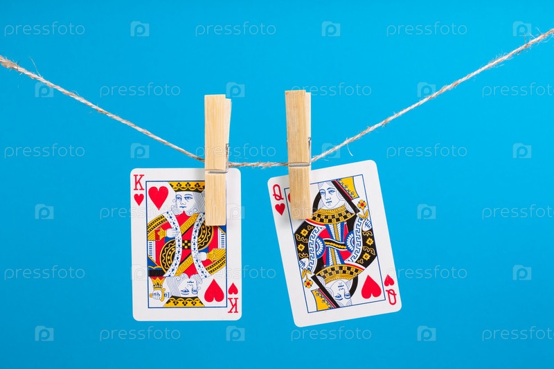 Король и королева висят на веревке на синем фоне