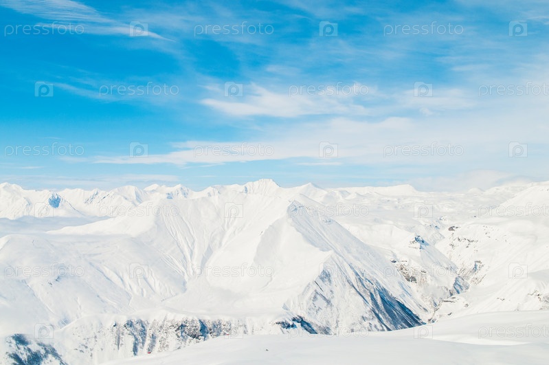 Снежные горы в яркий зимний день