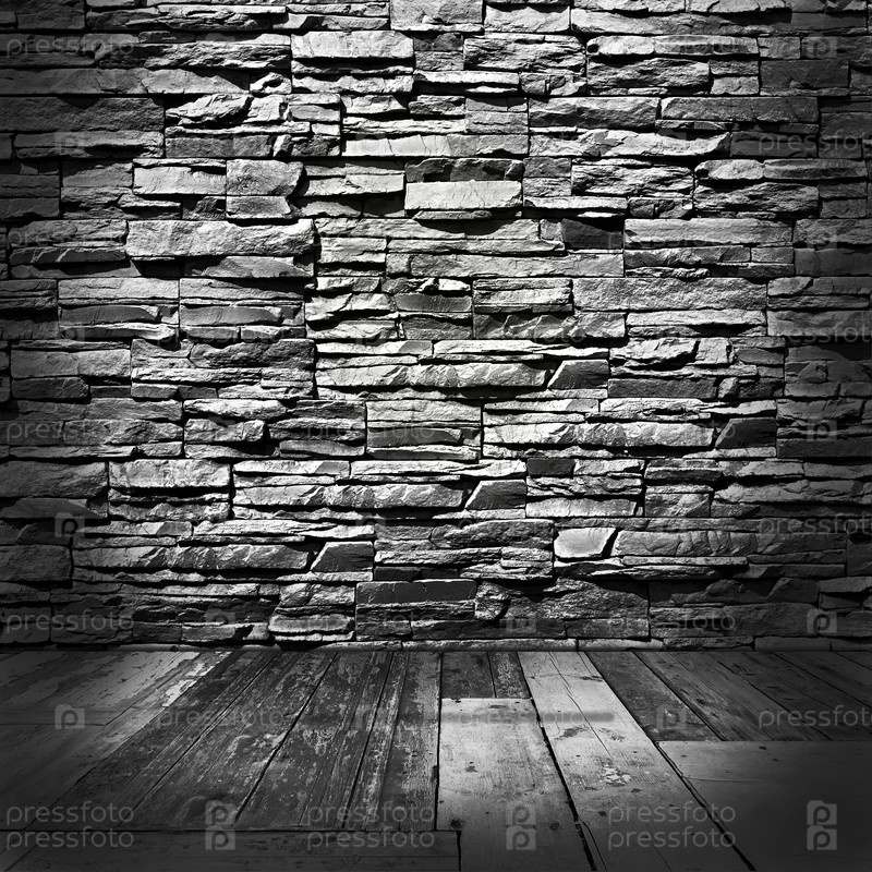 Комната с каменной стеной и деревянным полом в стиле гранж