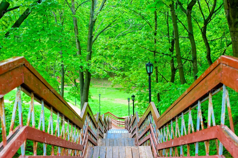 Деревянная лестница в заповедном лесу