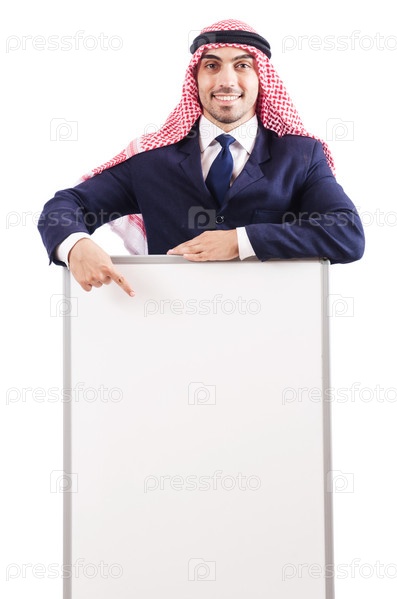 Араб с чистой доской для сообщения