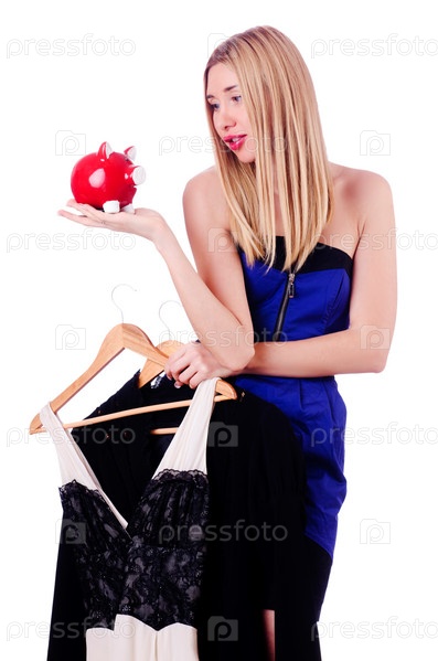 Женщина думает потратить свои сбережения на одежду