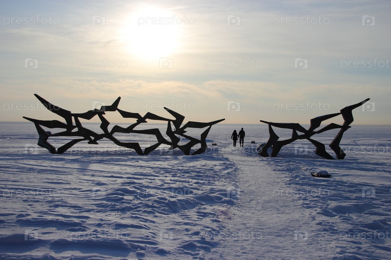 Памятник ласточкам на пляже зимой