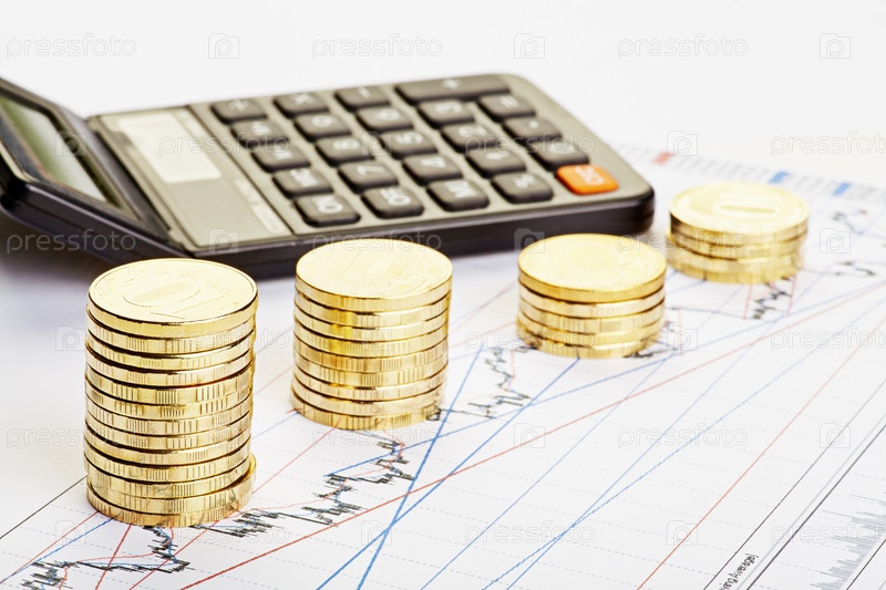 Нисходящие стопки монет и калькулятор на финансовом графике. Выборочный фокус