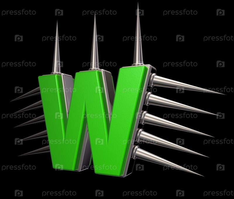 Буква w с металлическими шипами на черном фоне - 3d иллюстрация