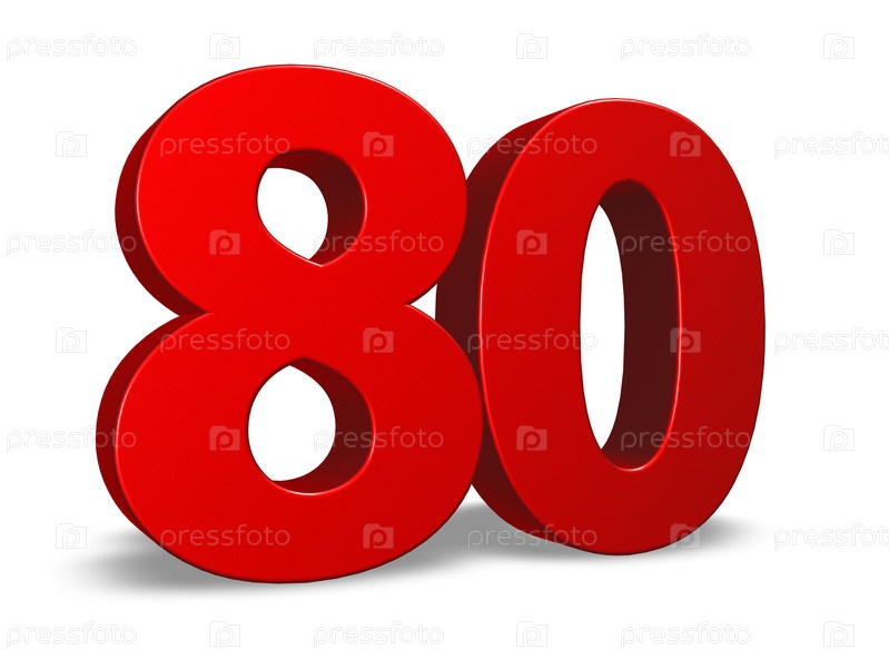 Красный номер 80 на белом фоне - 3D иллюстрация