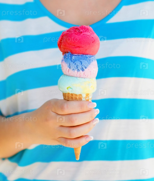 Рожок мороженого в руке крупным планом