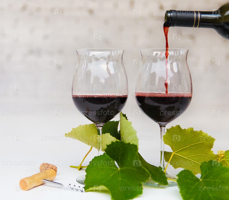 Натюрморт с бокалами красного вина